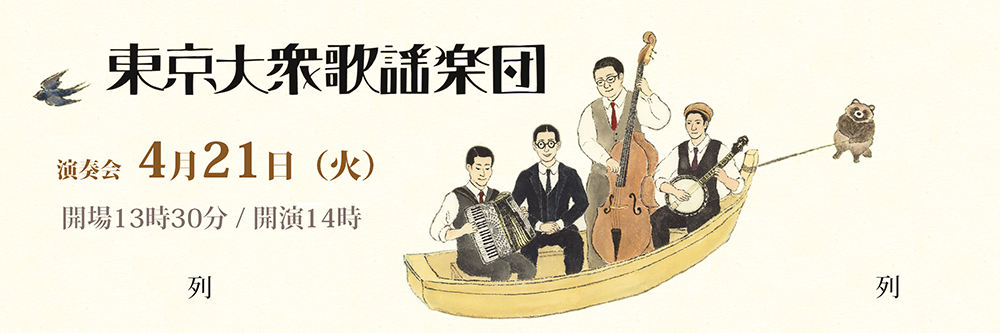 ポスター | 東京大衆歌謡楽団演奏会 Posted on 2026年2月24日 /Under WORK, 仕事, 墨と水彩 東京大衆歌謡楽団の演奏会 東京大衆歌謡楽団 [ポスター チラシ チケット] 2026 イラストとデザインを担当しました Other Work 分福茶釜 WORK, 墨と水彩 年賀状素材 | おめでタイガー WORK, 仕事, 墨と水彩 ポスター | 東京大衆歌謡楽団演奏会 WORK, 仕事, 墨と水彩 雑貨 | 祝箸、ペーパーランチョンマット WORK, 仕事, 墨と水彩